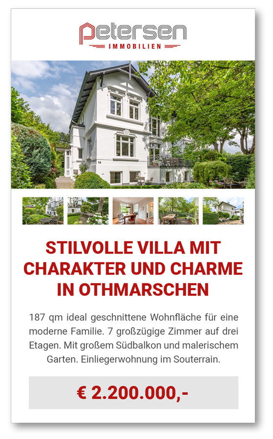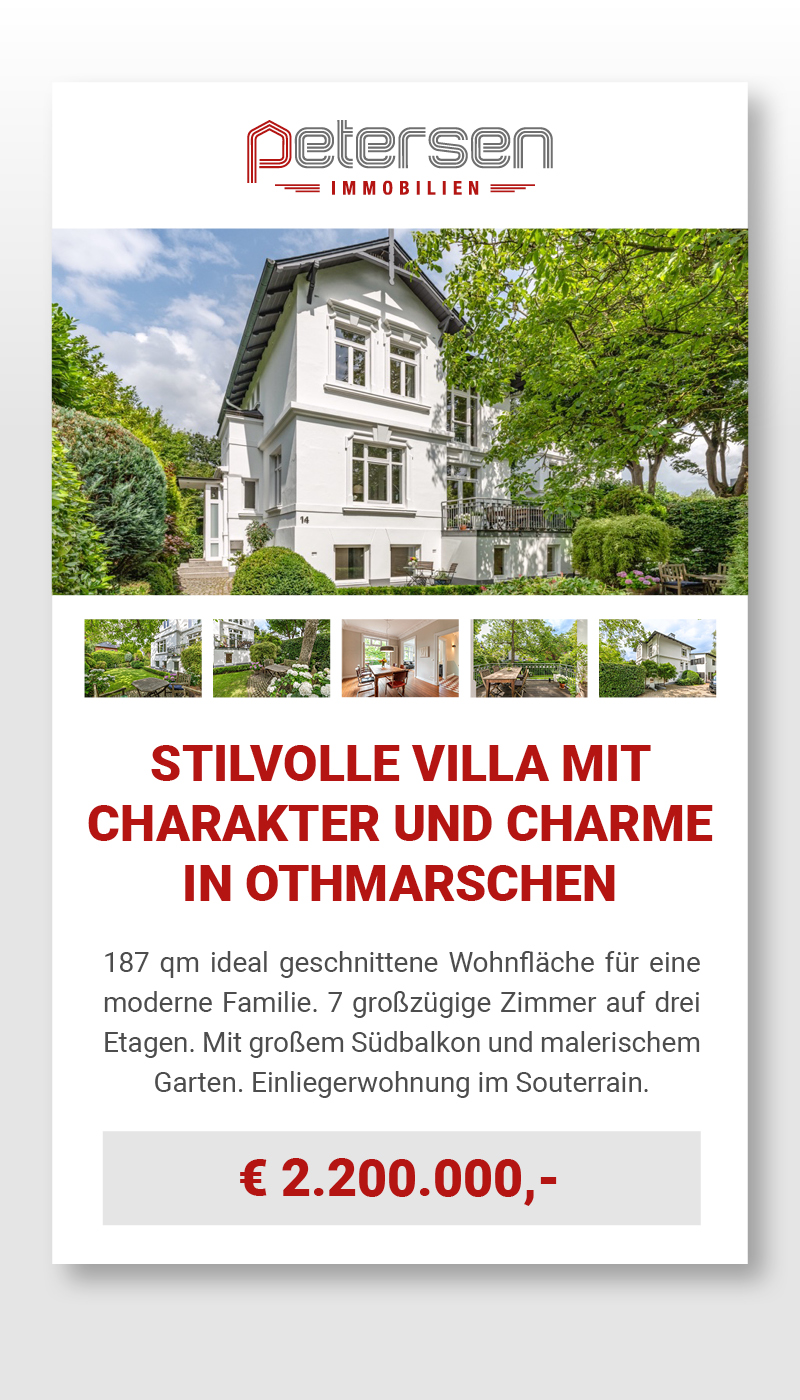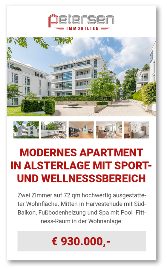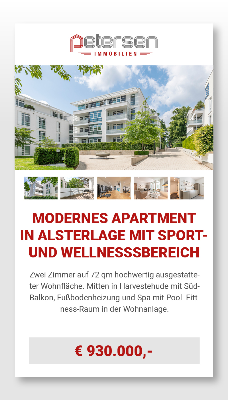 Bewerbung Ihrer Immobilie auf den gängigen Web-Portalen, über unseren Newsletter und im persönlichen Gespräch mit guten Kunden aus unserem eigenen Datenpool
